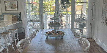 The property truly shines with its expansive outdoor bush oasis. A dining area under vine-covered trellises provides a picturesque backdrop for al fresco scenes, while the outdoor spa and wine barrel table add unique character to the space. The large garden, with its mature trees and charming nooks, offers endless creative possibilities for photography, film shoots, and event settings. Rafiki’s combination of serene country charm and practical amenities makes it the perfect location for productions seeking an authentic and inviting aesthetic.