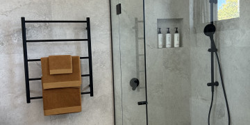 Property layout: Ground floor: Main entry, double garage, lift, 2nd living area, laundry and powder room . Level 1: Bed 1: Master bedroom with king bed, master ensuite, living area, kitchen, dining area, powder room, large private balcony Level 2: 2 x Queens bedrooms, bathroom and powder room. The property is situated at the rear of a 3 townhouse development. Privacy is excellent, access is via a shared driveway.