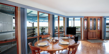 Welcome to Sailor, an inviting 3-bedroom beach house designed for your next creative project or brand activation event, set against a backdrop of beautiful rolling hills. The spacious, tastefully decorated living area features large windows that fill the space with natural light, providing an inspiring environment for filming and photography. Each of the three thoughtfully designed bedrooms offers a cozy atmosphere, perfect for resting or brainstorming sessions, with unique decor that adds charm to the setting.