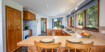 Culinary enthusiasts will love the fully equipped kitchen, ideal for crafting meals or hosting cooking demonstrations during your event. The expansive deck invites you to relax and enjoy the fresh air, making it perfect for outdoor gatherings. The outdoor dining area is suited for al fresco meals, while the barbecue grill is available for casual cookouts.