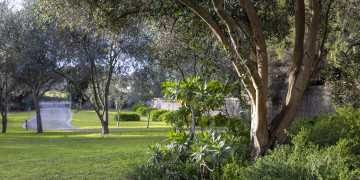 Textured organic linens, Australian artworks, and custom furnishings create a layered aesthetic that feels both timeless and contemporary. Sonos audio and a large LCD screen add a cinematic edge, transforming the space into an immersive private screening or production setting.