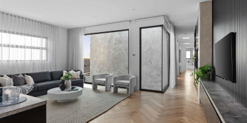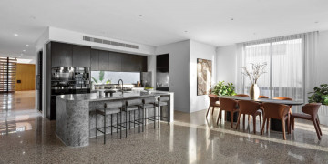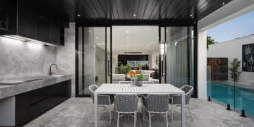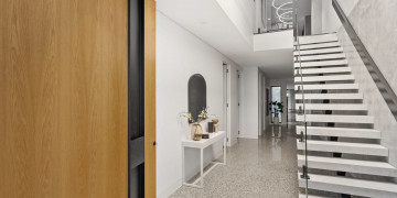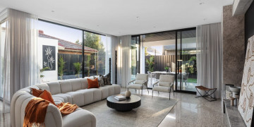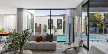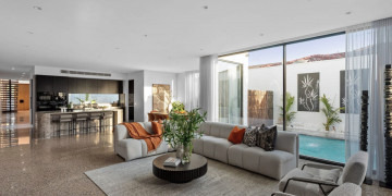 The state-of-the-art kitchen, defined by its curved stone island and integrated Miele appliances, floods with natural light, making it a perfect setting for culinary shoots and lifestyle campaigns. Expansive living and dining spaces flow seamlessly to the outdoor alfresco zone, complete with a BeefEater BBQ, in-ground pool, spa, outdoor shower and water feature, delivering a resort-style atmosphere. Upstairs, the spacious retreat, luxe master suites, and impeccably designed bathrooms provide multiple styled environments in one location. With electronic blinds, marble tiling, and a landscaped minimalist exterior, Sorelle offers a polished yet dramatic aesthetic, ideal for filming, editorial photography, and high-end brand activations.