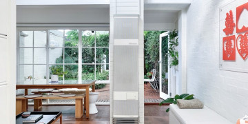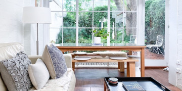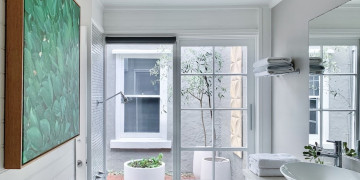 Sterling House & Studio is a beautifully restored Victorian terrace in Kew that perfectly blends historic charm with modern elegance. Light streams through cathedral ceilings and internal light courts, enhancing the home’s period features—arched hallways, stained glass doors, original mantels, and high ceilings with ornate roses. The main home includes two bedrooms, a bathroom with a unique sunken bath, and a galley-style kitchen opening to a lounge and dining area. French doors lead to a lush, green courtyard with a stunning canopy tree, offering a naturally lit, timeless backdrop ideal for film and photography.
