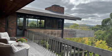 Set within 7.5 acres of serene apple orchard, Taliesin offers a stunning blend of architectural design and natural beauty. Backing onto the picturesque Lysterfield Park, this double-story home is a masterful nod to Frank Lloyd Wright’s design philosophy, with its striking cantilevered deck, clean lines, and seamless connection to the surrounding landscape.