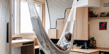 This multi-award winning and highly sustainable family home showcases Japanese, Nordic and mid-century modernist elements, with a warm welcoming feel and a lot of fun. Some of the unique features include: sunken lounge with built-in leather sofa, black and marble kitchen, double storey upstairs rooms with lofts , mezzanines and wall-to-wall hammock-style nets to hang out in, an atelier style attic and bathrooms with internal vertical gardens.