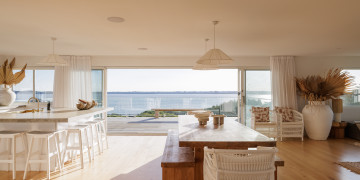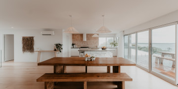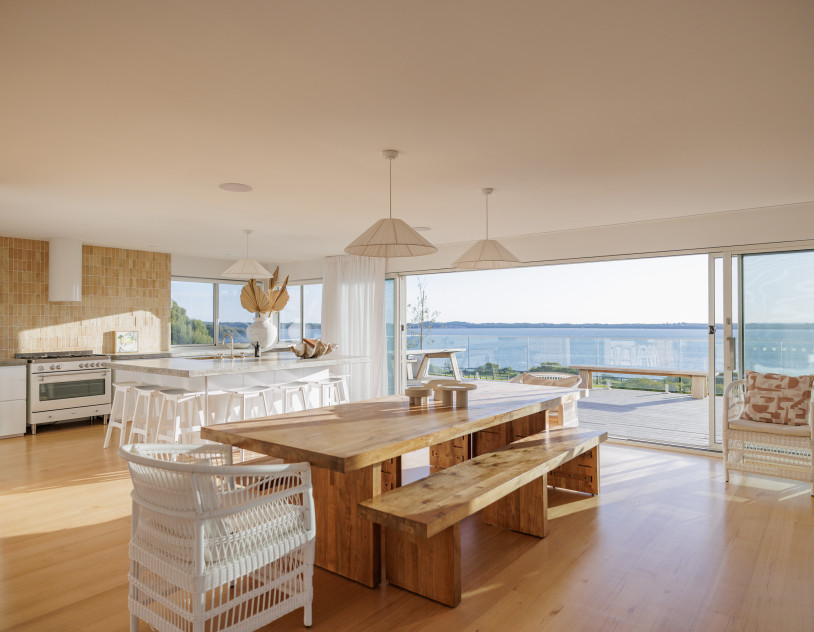 This immaculate modern renovation has brought new life and light to this beachfront 70's red brick classic. With a white render, washed wooden panelling, expansive deck and pool area, this stunning location has been completely transformed into a serene oasis with direct foreshore access.