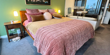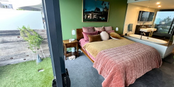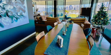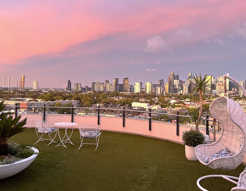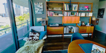 Sitting above Port Melbourne, The Paloma is a one-of-a-kind penthouse that blends midcentury modern charm with panoramic 180-degree views stretching from the Melbourne CBD skyline to the vast waters of Port Phillip Bay. Designed for high-end productions, fashion editorials, and luxury brand campaigns, this space offers an effortlessly cinematic backdrop where vintage sophistication meets contemporary ease.