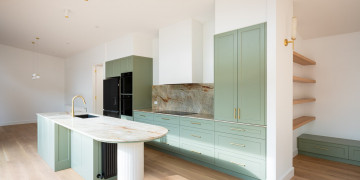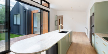 Design highlights include elegant marble benchtops and a striking north-facing rear extension clad in blackbutt timber, complemented by matching decking. This light filled extension houses the main kitchen, dining and living spaces and opens via large doors to an undercover alfresco area with built-in BBQ.