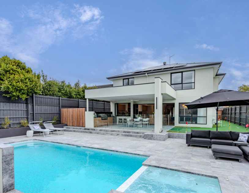 A contemporary masterpiece spanning 55 squares, The Rion offers uncompromised modern luxury and endless creative potential. Set among beautifully landscaped gardens, the outdoor spaces are a dream backdrop—featuring a fully tiled heated pool with cascading fountains, heated spa, mini-golf course, and multiple lounging zones perfect for film, TVCs, or lifestyle shoots. A spacious undercover alfresco with a full outdoor kitchen seamlessly connects to the interior, creating a resort-style flow ideal for entertaining scenes.