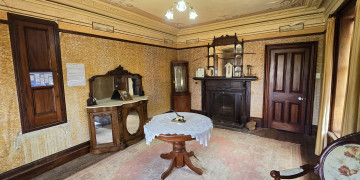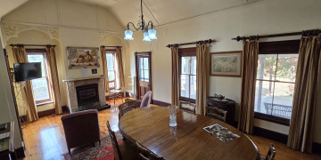 The grand 1846 homestead features a cigar room, drawing room, dining room, original kitchen, 5 bedrooms, flooring made from adzed red gum boards and a verandah that still has the original Douglas Pump that's connected to the well below. The rooms throughout the homestead are all period furnished with high ceilings and ornate detail with some rooms including original hand made furniture. The original cottage (1843) was made from Van Diemen's Land split palings and black-wood shingles. Extensive Gardens were redeveloped in 1935 and features well planned lawns, rows of shrubs, garden beds with roses, flowers and exotic trees. The long flowing hedge on the front side of the house is 180 years old.