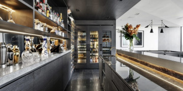 For more intimate moments, a den-style retreat offers a sophisticated setting for VIP gatherings, featuring a custom-built bar, integrated wine and beer fridge, ice maker, and Miele dishwasher. Whether hosting a private dinner, a luxury showcase, or a behind-the-scenes green room for elite talent, this space is tailored for exclusivity.