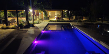 The solar-heated 11 x 5 metre pool is surrounded by glass fencing, bamboo, and palm trees, adding a laid-back, tropical vibe. There’s a kids’ zone with an in-ground trampoline and cubby house, great for family-themed content. A large shed has been set up as a gym with fairy lights adding warmth and character, while another shed offers secure storage for vehicles or gear. Onsite parking for 20–30 cars makes crew logistics simple. Power, water, and WiFi are available across the property, along with access to chairs, tables, and other practical setup items. Tucker’s Daughter is a comfortable and flexible backdrop that suits a wide range of creative shoots.