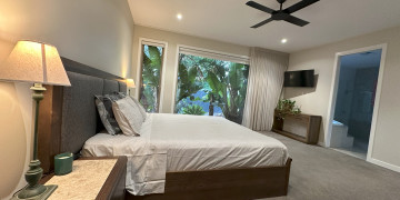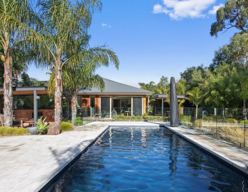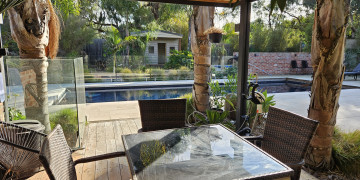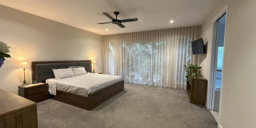 Tucker’s Daughter is a spacious, private home set on 1.25 acres at the end of a quiet court, surrounded by native bushland and tucked behind secure gates. It offers a relaxed, lived-in feel with plenty of room to accommodate film, TVC, and photography crews of all sizes. The 4-bedroom, 35-square house features a generous master suite with an ensuite and spa bath, high ceilings, and floor-to-ceiling curtains that bring in soft natural light. The kitchen is fully functional and includes a Smeg coffee machine, perfect for lifestyle or kitchen-based scenes. A large enclosed entertainment room wrapped in glass doors flows out into the backyard, creating an easy indoor-outdoor dynamic.