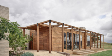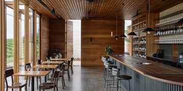 In contrast the timber clad tasting room and dining space nestle against the solid masonry providing shelter inside for the occupants. The reduced palette of timbercrete, timber lining, concrete aggregate and raw steel is used to create robust forms, frame views, draw light into the building and create a warm and generous interior. It won the 2023 The Harry Seidler Award for Commercial Architecture in the AIA National Architecture Awards as well a slew of other awards. With sweeping views across Taungurung Country, this location provides multiple spaces for shoot or film productions with a stunning backdrop in the foothills of the Victorian High Country.