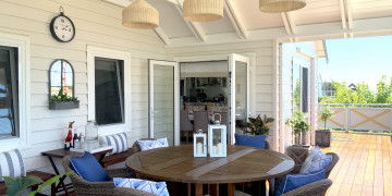 The Hamptons-style interior with bay views of Mount Martha, combined with the beautiful garden and luxury garden shed, offers a fantastic backdrop. The marble bathrooms and outdoor room with a gabled roof are perfect for showcasing elegance and sophistication.