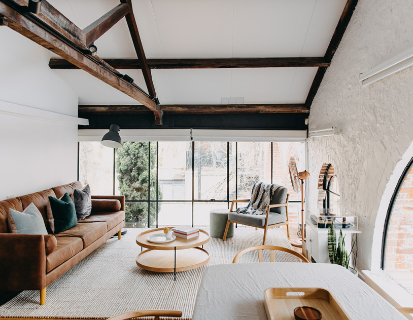 A unique two-story apartment that marries historic charm with contemporary design. Originally built in 1890 and renovated by renowned architect Brian Klopper, this property offers a stunning setting for film and photography productions. The apartment is generously sized, featuring iconic black steel-framed windows and high ceilings with exposed dark timber beams, creating a spacious and airy atmosphere.