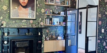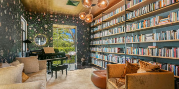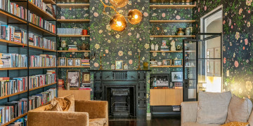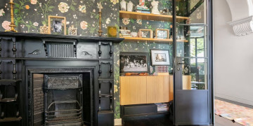 Melding original character features with modern luxury, the home’s striking façade — with its classic batten and roughcast gables, boxed bay window, and steel-framed front door — creates a timeless entry point. Inside, the standout library offers a one-of-a-kind setting: hand-painted wallpaper, a gold leaf ceiling, a period fireplace, and wall-to-wall bookshelves, making it a dream for editorial shoots, interviews, and intimate scenes.